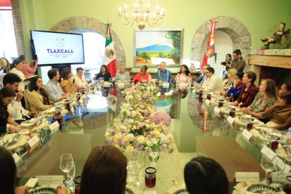 La gobernadora Lorena Cuéllar Cisneros se reunió con representantes de la Mesa de Cooperación Internacional para la Igualdad de Género en México (MCIG), para tratar temas enfocados en el trabajo de cuidados y compartir experiencias que han llevado al empoderamiento de las tlaxcaltecas.