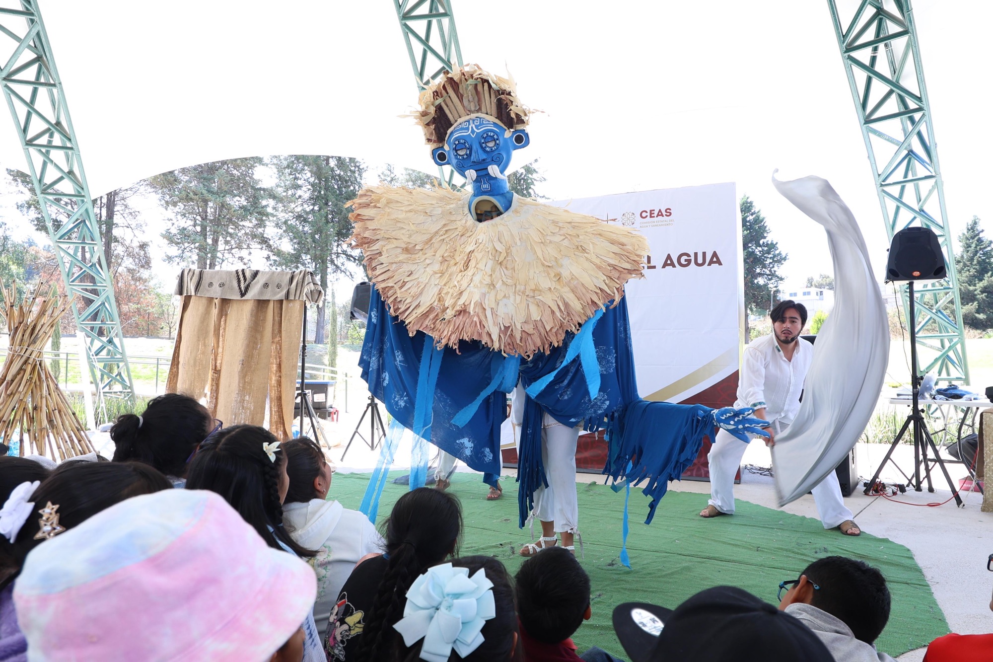 Como parte de la jornada, familias tlaxcaltecas disfrutaron de la obra de teatro “Tlaloque, historia breve sobre un servidor de Tlaloc”, que se presentó gracias al apoyo de la Secretaria de Cultura del estado.