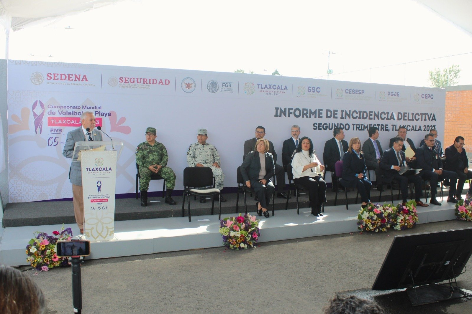 A la presentación del informe asistieron las y los integrantes de la Mesa de Seguridad, funcionarios del gabinete legal y ampliado, diputadas y diputados locales, magistradas y magistrados, las y los presidentes municipales; representantes de organismos autónomos, de partidos políticos, de transportistas, de instituciones bancarias, de cámaras y asociaciones empresariales, de la Diócesis de Tlaxcala y rectores de universidades.