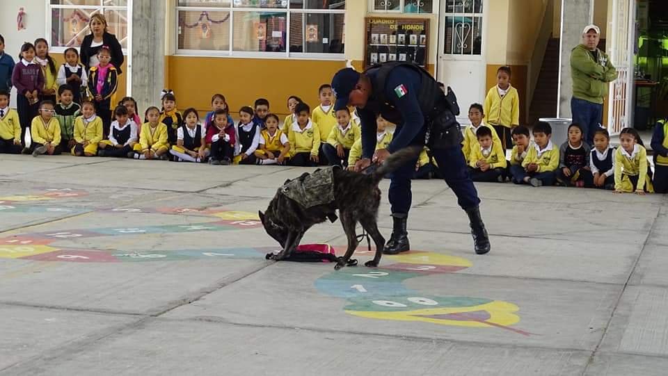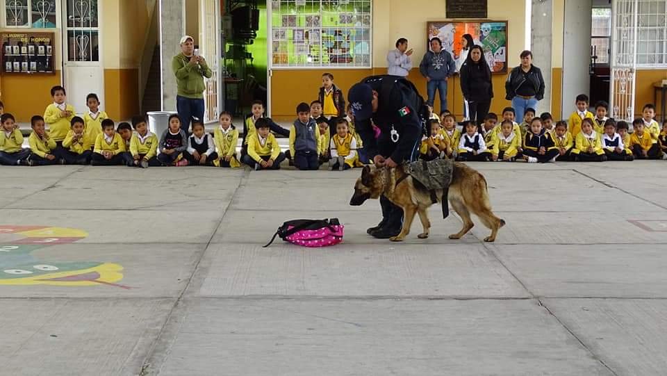Con el objetivo de dar a conocer en qué consiste el trabajo que realiza la Unidad Canina K9 de Xicohtzinco, este miércoles elementos de seguridad pública hicieron una visita a la escuela primaria Mártires de Xicphtzinco.
