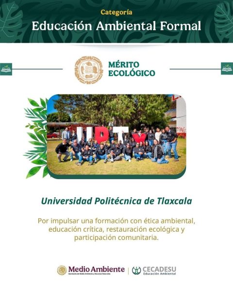 Este reconocimiento, otorgado desde 1993, busca visibilizar acciones en favor de la protección y restauración del patrimonio natural y biocultural del país, y posiciona a la UPTLAX como referente nacional en educación ambiental y en la promoción de una cultura de sostenibilidad.